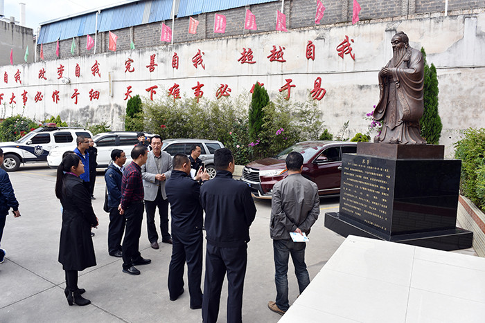 2017年4月21日上午,安寧市委常委、政法委書記李榮敬、市公安局政委張雙平、市政法委副書記龔誠偉、市教育局黨委書記王永麗、市公安局連然派出所所長王文、金方派出所所長王學全、市關工委主任李庭貴、團市委副書記張勇進、市人民檢察院未成年檢察科室科長孫曉宇等各部門領導一行22人蒞臨我校調(diào)研指導工作。