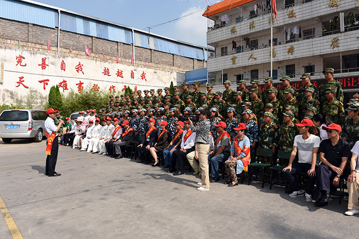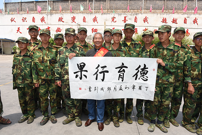 在隨后的合影過程中,趙久詩(shī)主任、王永麗書記、李庭貴主任分別作了講話。趙主任指出:關(guān)工委是黨和政府教育青少年的參謀和助手,是聯(lián)系青少年的橋梁和紐帶;學(xué)校要堅(jiān)持不懈地以社會(huì)主義核心價(jià)值觀體系教育、引領(lǐng)青少年,為培養(yǎng)合格的社會(huì)主義建設(shè)者和接班人做出應(yīng)有貢獻(xiàn);孩子們要珍惜這里的時(shí)光,修身養(yǎng)性,把最好的自己帶回家庭、學(xué)校和社會(huì)。由于趙主任是部隊(duì)出身,講到動(dòng)情處,趙主任還情不自禁地向同學(xué)們下了“稍息”“立正”“向右看齊”“向前看”的口令,并向同學(xué)們敬禮,大家都非常感動(dòng)。合影之后,領(lǐng)導(dǎo)們還為孩子們分發(fā)了創(chuàng)建全國(guó)科普示范市專用記錄本。