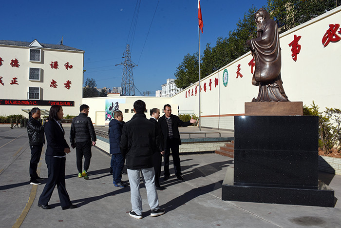 阿四•官鑫主席一行首先參觀了我校辦公樓、食堂、心理輔導(dǎo)室、學(xué)生宿舍、孔子雕像、監(jiān)控設(shè)備等校園環(huán)境,隨后觀看了學(xué)校教學(xué)活動(dòng)短片。期間,魯校長(zhǎng)簡(jiǎn)要介紹了學(xué)校的發(fā)展歷程、辦學(xué)理念、辦學(xué)特色、辦學(xué)成果等。