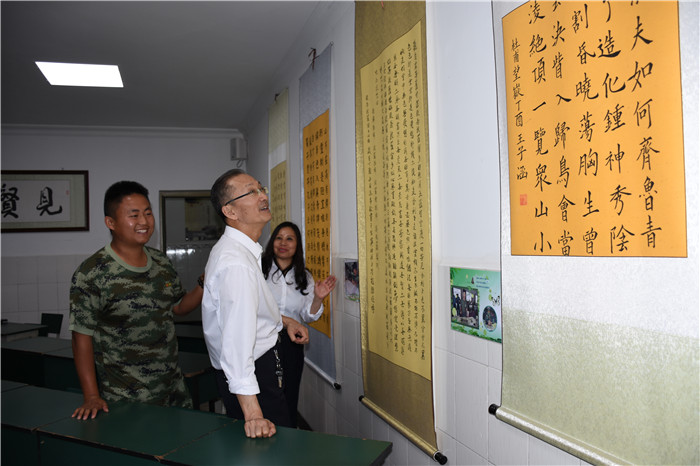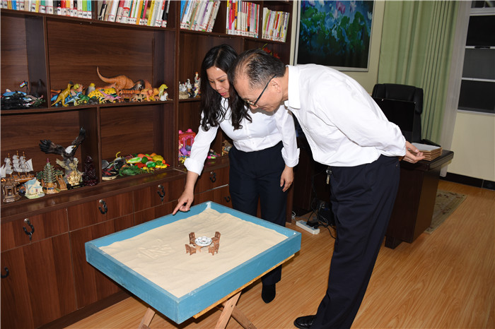當(dāng)?shù)弥總(gè)孩子入校都要從洗碗、洗衣服、疊被子的生活小事開始做起時(shí),翟教授連連夸贊學(xué)校的養(yǎng)成教育設(shè)置得非常好;當(dāng)看到學(xué)生宿舍的被子疊得整整齊齊,小教室里孩子們有模有樣的書法時(shí),翟教授更是感受到了孩子們蛻變的態(tài)度、心境與決心;當(dāng)走到心理輔導(dǎo)室時(shí),翟教授饒有興趣地查閱了學(xué)校心理輔導(dǎo)工作記錄情況,并與我校心理輔導(dǎo)首席專家周榕樺老師進(jìn)行了深入的探討交流。翻看著每個(gè)孩子的成長記錄清晰詳細(xì),量表簡潔適用,翟教授連連稱贊我校心理輔導(dǎo)工作開展得扎實(shí)有效;當(dāng)看到文化走廊間懸掛的春節(jié)圖片時(shí),翟教授連連感嘆學(xué)校老師24小時(shí)傾情陪伴孩子的無私奉獻(xiàn);當(dāng)?shù)弥獙W(xué)校辦學(xué)八年來,成功改變了數(shù)千名孩子,更是給予了高度評價(jià)。