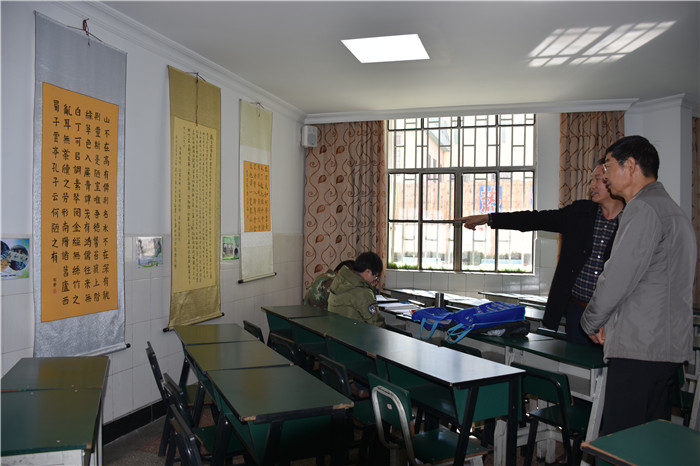 尹主任一行首先深入學校辦公樓、教學樓、食堂、宿舍樓等實地查看了校園環(huán)境和硬件設施設備。隨后,在多媒體教室觀看了學校教學活動短片,全方位、深層次地了解學校的辦學情況。其間,魯校長向尹主任詳細匯報了學校的辦學特色、課程設置、師資力量及學校的發(fā)展戰(zhàn)略定位等情況。