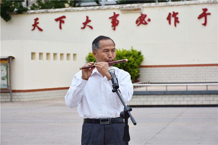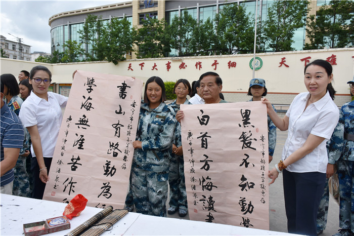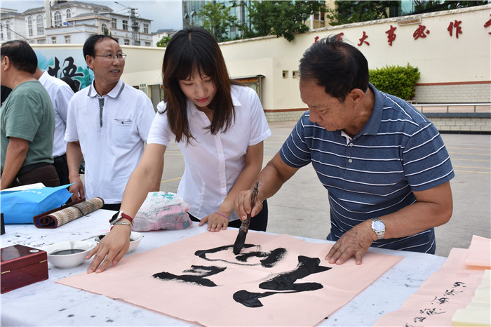2020年6月27日上午,在安寧市關(guān)工委常務(wù)副主任李庭貴的帶領(lǐng)下,安寧市“五老”領(lǐng)導(dǎo)鄧成列(省勞模)、山萬(wàn)偉、楊貴福、楊長(zhǎng)生、徐繼泉(中國(guó)書法家),安寧市詩(shī)書畫二組朱正才等一行近30名退休老領(lǐng)導(dǎo)、老干部與我校共同開(kāi)展“心系下一代,牽手筑未來(lái)”活動(dòng)。