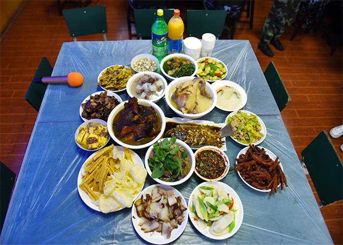 為了準備豐富的年夜飯,老師和同學們從上午就開始忙碌著,一起幫著學校廚師們打著下手。到了下午,一盤盤色香味俱全的菜肴就呈現(xiàn)在大家面前了,伴隨著隆隆的鞭炮聲,年夜飯開始了。