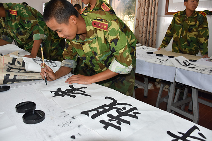 談到學(xué)校的書法活動(dòng),授課老師韋昌毅頗有感觸,他說道:“好孩子學(xué)校書法進(jìn)課堂在校園內(nèi)深入開展,學(xué)生的軟筆書寫都越來越規(guī)范了,學(xué)習(xí)態(tài)度也越來越端正了。書法進(jìn)課堂的目的并不是為了培養(yǎng)書法家,而是為了讓學(xué)生在書中領(lǐng)悟做人的道理,激發(fā)學(xué)生對(duì)祖國(guó)傳統(tǒng)文化的熱愛之情。孩子們?cè)陂L(zhǎng)期的書法練習(xí)中,需要靜心、細(xì)心和恒心,而這,恰恰能影響孩子的一生。學(xué)校領(lǐng)導(dǎo)每年投入上萬元為學(xué)生配備筆、墨、紙、硯等書法教學(xué)用品,除常規(guī)的課堂,還每月定期開展比賽,且每次都開展得有聲有色,讓書法教育進(jìn)課堂工作真正落到了實(shí)處,是相當(dāng)接地氣的!