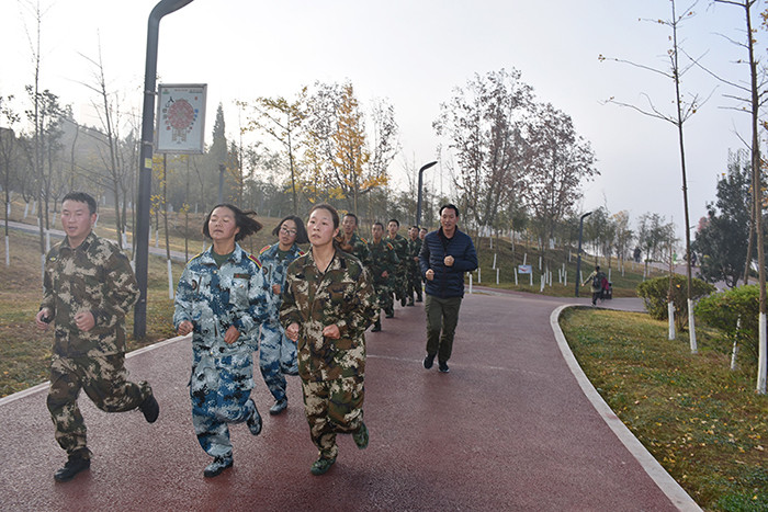2017年11月30日早晨七點(diǎn),我校組織部分學(xué)生到寧湖公園進(jìn)行五公里拉練。學(xué)校校長(zhǎng)魯植、副校長(zhǎng)毛積敏、總教官楊玉峰以及部分班主任全程陪跑。