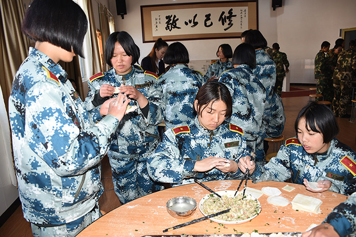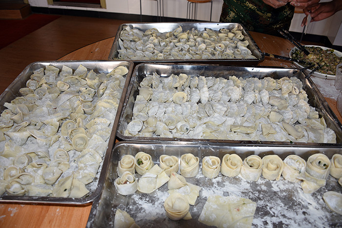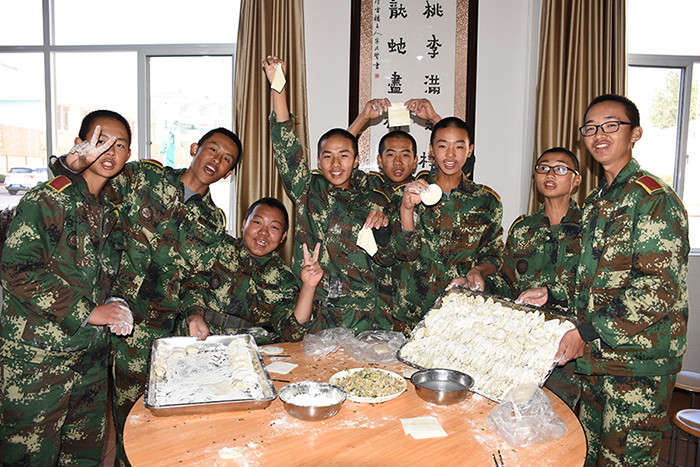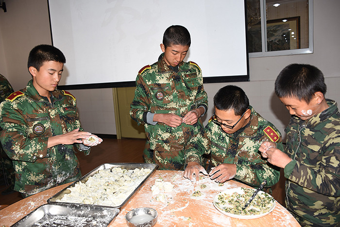 一大早,孩子們便欣喜若狂地來到食堂,迫不及待地想要大顯身手。副總教官王濤給孩子們講解了冬至的來歷和習(xí)俗后,各班主任和孩子們就一起開心地包起了餃子。你看,有的包、有的捏、有的說、有的笑、有的商討、有的相互切磋技巧......老師們一會(huì)兒做“督導(dǎo)員”,一會(huì)兒捋起袖子加入到包餃子的強(qiáng)大陣營(yíng)當(dāng)中,師生同樂的暖意沁人心脾。孩子們包出來的餃子花樣繁多、千姿百態(tài),有敦實(shí)厚重的,有別致精巧的,還有四不像的。看著一盤盤別出心裁但都裹滿愛意的餃子,看著一張張掛滿面粉但都笑容燦爛的面容,吃著香溢滿口的餃子,別樣的冬至喜慶連連。