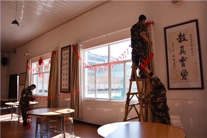 2018年2月13日至14日,為迎接狗年春節(jié)的到來(lái),我校停課開(kāi)始籌備新年的各項(xiàng)準(zhǔn)備工作。一大早,師生們就對(duì)學(xué)校進(jìn)行全面大掃除,隨后著手布置校園。老師和孩子們用中國(guó)結(jié)、氣球、彩帶、彩燈、紅燈籠、剪紙、春聯(lián)等飾品裝束著校園,經(jīng)過(guò)兩天的忙碌,校園內(nèi)張燈結(jié)彩,到處洋溢著濃郁的節(jié)日喜慶氛圍!大家都在以一顆翹首以盼的心等待春節(jié)的到來(lái)。