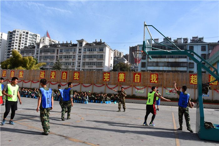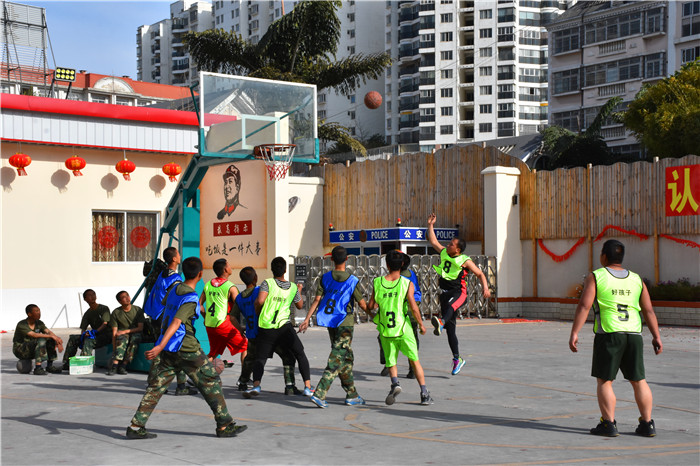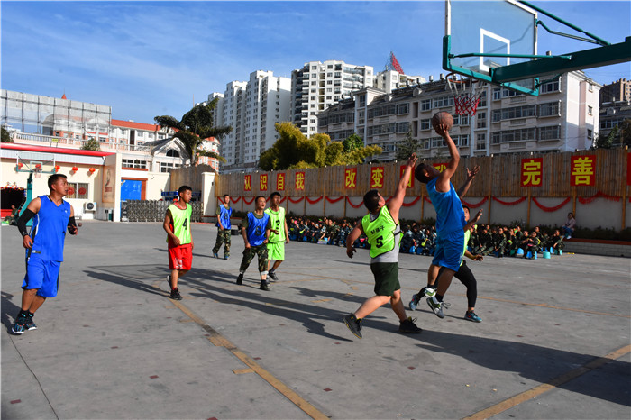 下午是師生籃球比賽。在球場上,隊(duì)員們頑強(qiáng)拼搏,互相配合,只見他們投籃、搶籃板、進(jìn)攻、防守,將場上的氣氛一次次推向高潮。場下的啦啦隊(duì)員連連為比賽隊(duì)員加油打氣,吶喊助威!