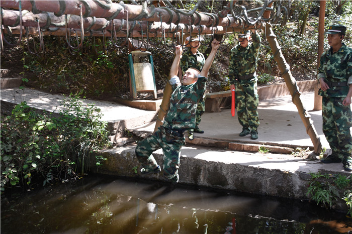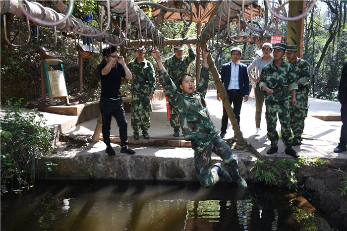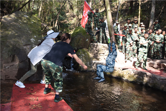 在老師們的帶領(lǐng)下,大家沿著山間的石板路,首先到達(dá)了第一個(gè)項(xiàng)目挑戰(zhàn)點(diǎn)——水上蕩繩(也叫笑料陷阱),孩子們在老師的耐心講解和示范后,相繼進(jìn)行了挑戰(zhàn)。有的輕松自如,動(dòng)作規(guī)范;有的驚險(xiǎn)蕩過,虛驚一場;有的蜻蜓點(diǎn)水,老師巧妙護(hù)住。在結(jié)束第一個(gè)項(xiàng)目后,緊接著挑戰(zhàn)了“臂力渡河”,這個(gè)項(xiàng)目難度系數(shù)增大,為了安全起見,老師下水保護(hù),挑戰(zhàn)成功的同學(xué)一臉興奮,挑戰(zhàn)不成功的也不氣餒,大聲說著要再來一次,F(xiàn)場加油聲、歡呼聲此起彼伏,氣氛格外熱烈。隨后進(jìn)行的是“叢林穿越”,孩子們分為兩列縱隊(duì)興高采烈地沿溪而上,一條長龍穿梭在山谷之中,和煦的陽光透過稠密的樹葉灑落下來,點(diǎn)點(diǎn)金色的光斑倔強(qiáng)地映照在孩子們喜笑顏開的臉上,清脆的歡笑聲在山谷間回蕩。大家邊走邊在自己喜歡的地方,擺出不同的姿勢,和小伙伴們留下最珍貴的回憶。清幽的山谷,呈現(xiàn)出一幅人與自熱和諧相處的畫面。