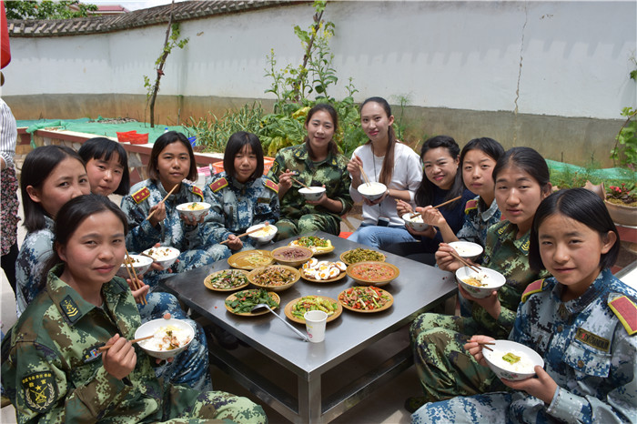到了吃飯時間,同學們來到櫻桃園附近的農(nóng)家院,熱心的老板正在準備著豐盛的午餐,同學們很懂事,都主動幫著廚師們?nèi)ヌ锢镎、洗菜。片刻間,一盤盤美味佳肴就上桌了,孩子們吃得津津有味,大呼過癮。