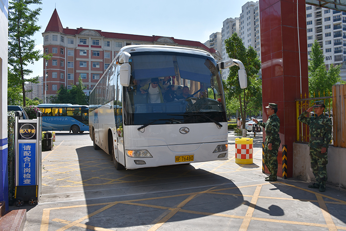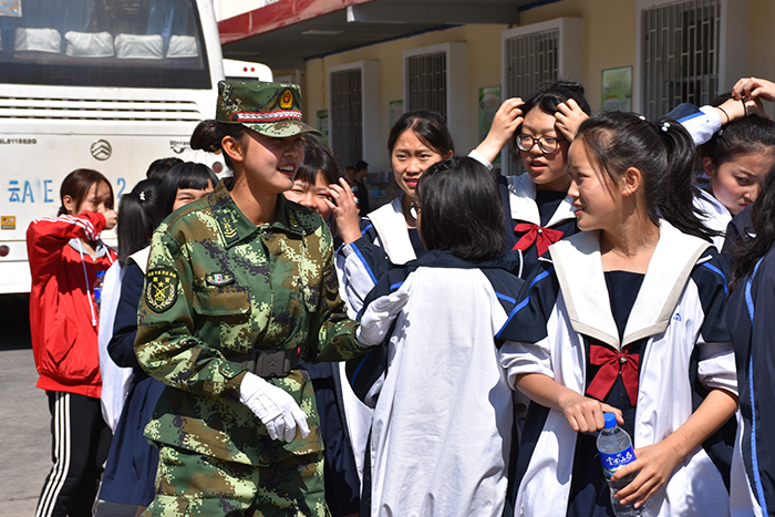 一大早,同學(xué)們聽說金殿中學(xué)的全體師生要來我校時(shí),都激動(dòng)不已,并快速打掃完衛(wèi)生后全都跑來操場上等著、盼著、還相互討論著……當(dāng)看到三輛大客車進(jìn)入校園的那一刻,孩子們激動(dòng)了、沸騰了,并用齊刷刷的軍禮表示了最熱烈的歡迎。剛下大巴車,金殿中學(xué)的孩子們就興高采烈地跑來與我校的教官們問好、打招呼,好像早就認(rèn)識(shí)一樣。原來就在上月兩校開展的教研活動(dòng)中,我校教官為金殿中學(xué)的孩子們進(jìn)行了軍訓(xùn),和他們結(jié)下了深厚的友誼,此時(shí)此景再見,別樣的感情不禁油然而生。