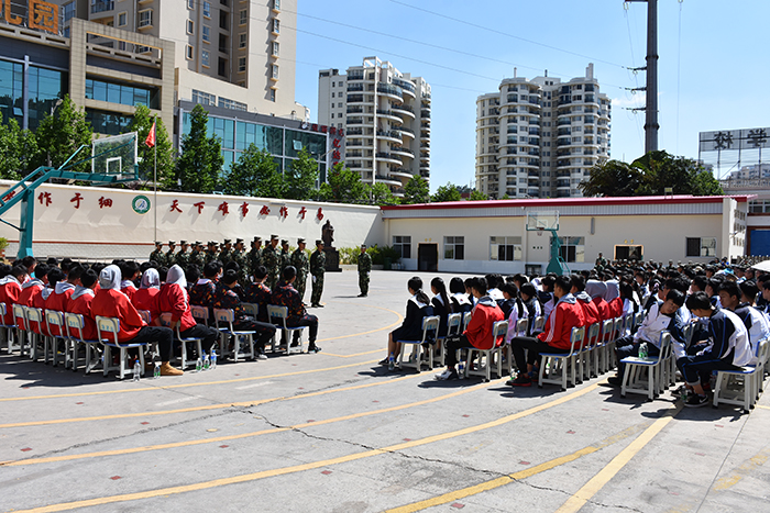 參觀結(jié)束后,活動(dòng)正式開始了,全體人員在操場集合。我校魯植校長致歡迎詞,代表全校師生對金殿中學(xué)一行的到來表示最熱烈的歡迎!緊接著在莊嚴(yán)的升國旗儀式后,兩校的交流活動(dòng)正式拉開序幕。