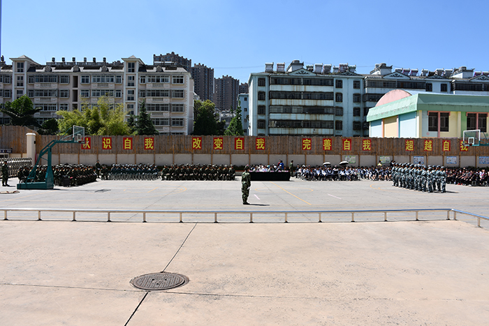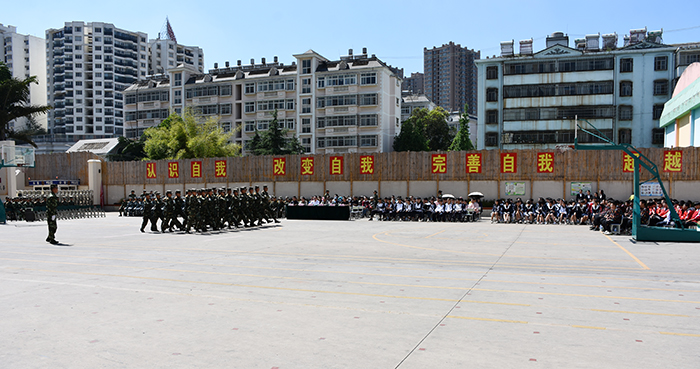 首先,在教官的帶領(lǐng)下,我校各方隊(duì)率先出場,相繼進(jìn)行了男生隊(duì)列、女生隊(duì)列、女兵操、葫蘆絲合奏、匕首操、棍術(shù)方隊(duì)、感恩手語舞的表演,整齊劃一、氣勢非凡、別出心裁的表演,贏得了場下同學(xué)們陣陣熱烈的掌聲。嘉賓席上的領(lǐng)導(dǎo)們也不時(shí)為孩子們歡呼鼓掌。時(shí)間過得很快,一個(gè)半小時(shí)過后,我校的孩子們表演結(jié)束。該金殿中學(xué)的同學(xué)們上場了,首先派出的男生獨(dú)唱,緊接著是女生合唱,兩個(gè)節(jié)目盡顯風(fēng)采,成為了一道亮麗的風(fēng)景線,我校學(xué)生激動(dòng)地為他們鼓掌!還相互討論著這個(gè)好帥、那個(gè)好漂亮…孩子們的話題始終不停息,而且很高興!