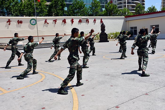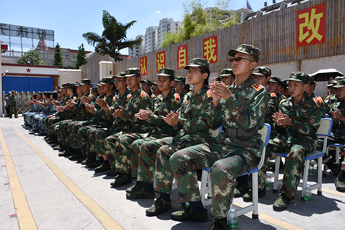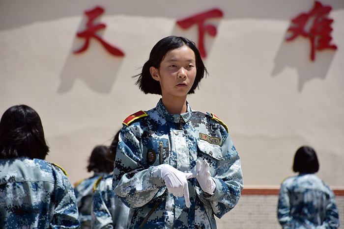 看著孩子們,我校的教官們情不自禁地下著口令,集合著隊(duì)伍,孩子們都很聽話,跟著口令,按著軍訓(xùn)時(shí)的方隊(duì),迅速整隊(duì),一個(gè)個(gè)站得筆直挺立,儼然一個(gè)個(gè)小軍人,師生們都相視會(huì)心地笑了。金殿中學(xué)的孩子們看著我校的校園,好奇地到處打量。剛聽老師說要參觀校園時(shí),就迫不及待地想要到處看看。隨后在老師們的帶領(lǐng)下,孩子們依次參觀了學(xué)生的宿舍、教室、食堂等。
