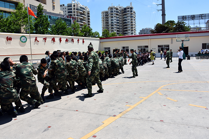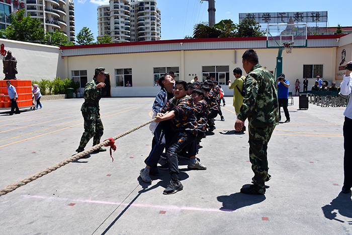 交流并未因節(jié)目表演結(jié)束而落下帷幕,而是在兩校的拔河較量中迎來了高潮。各校分別派出了40名男生,經(jīng)過老師們的排兵布陣,兩隊(duì)都卯足了勁要贏了對方,大家齊心協(xié)力,把力量擰成一股繩,只見同學(xué)們有的手被勒得發(fā)紅,有的鼓著腮、瞪著眼,臉漲得像個(gè)紅蘋果......但為了勝利他們還是咬緊牙關(guān),一個(gè)勁兒地往后拉。由于實(shí)力相當(dāng),賽場上一時(shí)難分勝負(fù)。一旁的啦啦隊(duì)員比參賽者還起勁,有的扯開喉嚨拼命喊,有的張開手臂用力揮,有的恨不得上前幫一把......整個(gè)操場上的加油聲、歡笑聲此起彼伏,熱鬧非凡。經(jīng)過三個(gè)回合的較量,我校險(xiǎn)勝。但兩校友誼第一、比賽第二和“一根繩、一條心”的精神給大家留下了深刻印象。