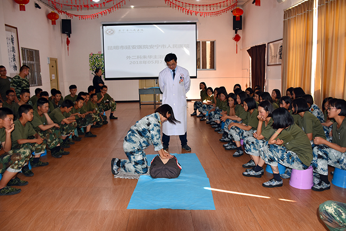 2018年5月21日下午,為全面提高全校學(xué)生對(duì)突發(fā)事故的科學(xué)、緊急救護(hù)能力,我校特邀請(qǐng)昆明市延安醫(yī)院安寧市人民醫(yī)院外二科主治醫(yī)師朱華、陸峻,護(hù)士胡亞瓊等專業(yè)醫(yī)護(hù)人員到校為孩子們開展應(yīng)急救護(hù)培訓(xùn)。