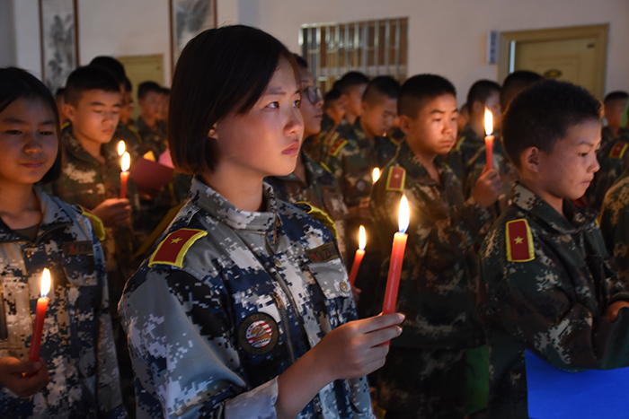 卡片制作結(jié)束后,孩子們手捧蠟燭,一邊深情地唱著《父親》,一邊看著卡片上的心聲,父親的形象一下子在閃動(dòng)的燭光中高大起來,對(duì)父親的愧疚與思念頓時(shí)充斥了那顆滴滴答答的心,孩子們不禁淚流滿面。