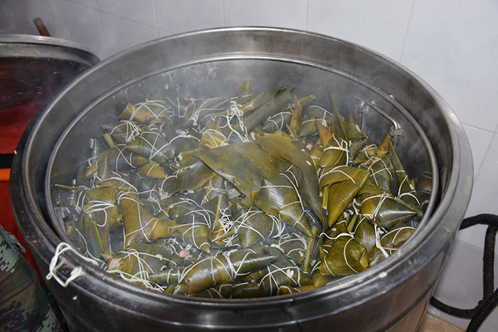 早點(diǎn)過(guò)后,師生們準(zhǔn)備好了所有材料,同學(xué)們?cè)诶蠋煹闹笇?dǎo)下,清洗粽葉,準(zhǔn)備包粽子。不一會(huì)兒,所有材料準(zhǔn)備就緒,大家就開(kāi)始包起粽子。細(xì)長(zhǎng)的粽葉在師生們靈活的手指下團(tuán)成漏斗狀,糯米合著花生、火腿被包進(jìn)粽葉中,一根根細(xì)彩線纏繞在粽子上。折粽葉、填糯米、裹葉子、系線,一時(shí)間粽葉飛舞,絲線穿梭,一個(gè)個(gè)玲瓏而秀氣的粽子不一會(huì)兒便誕生了,在這過(guò)程中,大家還交換了如何把粽子包的更漂亮、更有型的心得。大家一邊包粽子,一邊分享著端午這一傳統(tǒng)節(jié)日的故事;顒(dòng)現(xiàn)場(chǎng)一片歡騰,笑聲連連,整個(gè)餐廳沉浸在一片歡樂(lè)的海洋里。