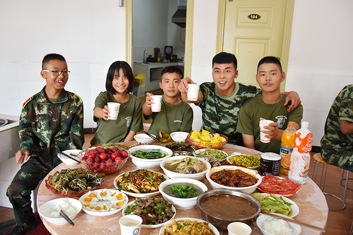 傍晚,一桌桌色香味美的飯菜全部就緒,粽子也蒸熟了,同學(xué)們興高采烈地一盤(pán)一盤(pán)端上桌,大家圍坐在一起,看著自己的勞動(dòng)果實(shí)說(shuō)著、笑著!過(guò)一會(huì)兒,魯植校長(zhǎng)發(fā)表了節(jié)日祝賀和熱情洋溢的講話:“今天的端午不一樣,希望孩子們?cè)跊](méi)有家人陪伴的節(jié)日里,能夠更深刻地認(rèn)識(shí)到親人的重要性;在沒(méi)有踏青旅游的節(jié)日里,能夠用足夠的時(shí)間改變自己,在學(xué)校完成學(xué)習(xí)目標(biāo),追求自己的人生理想……”聽(tīng)到校長(zhǎng)的祝愿,同學(xué)們掌聲不斷。開(kāi)席后,孩子們吃著豐盛的晚餐、品嘗著獨(dú)特香味的粽子,不時(shí)向老師道祝福,和同學(xué)相共勉。在攝像機(jī)的鏡頭下,孩子們還爭(zhēng)先恐后地向遠(yuǎn)方的爸媽送祝福,希望他們端午安康!