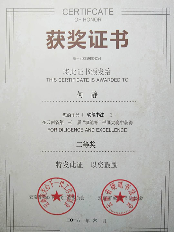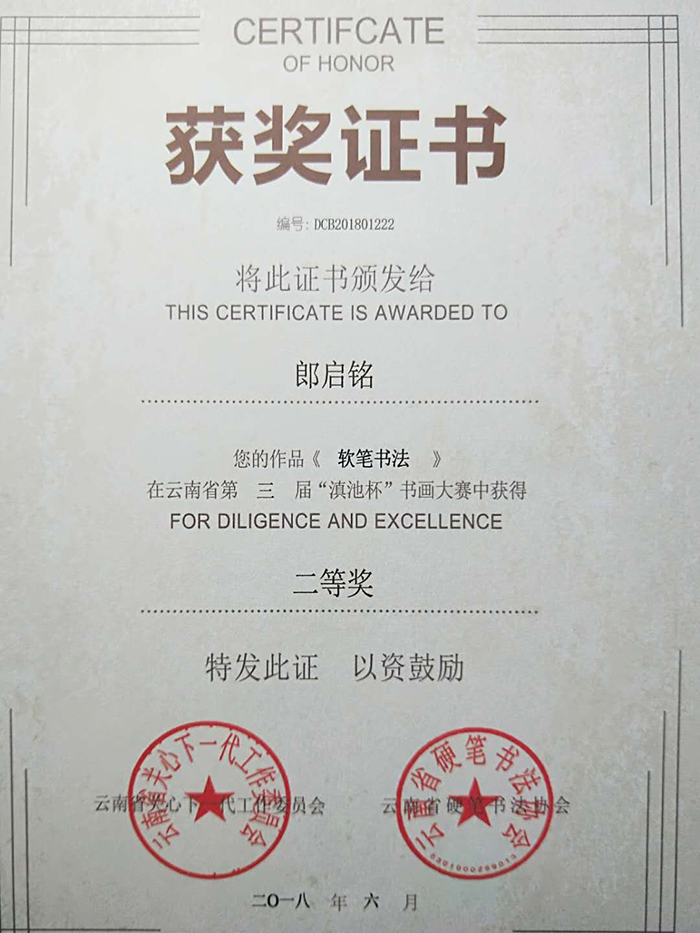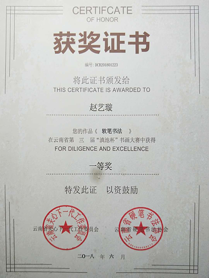 2018年6月,我校部分學生積極參加了由云南省關(guān)心下一代工作委員會組織的云南省第三屆“滇池杯”書畫大賽活動。