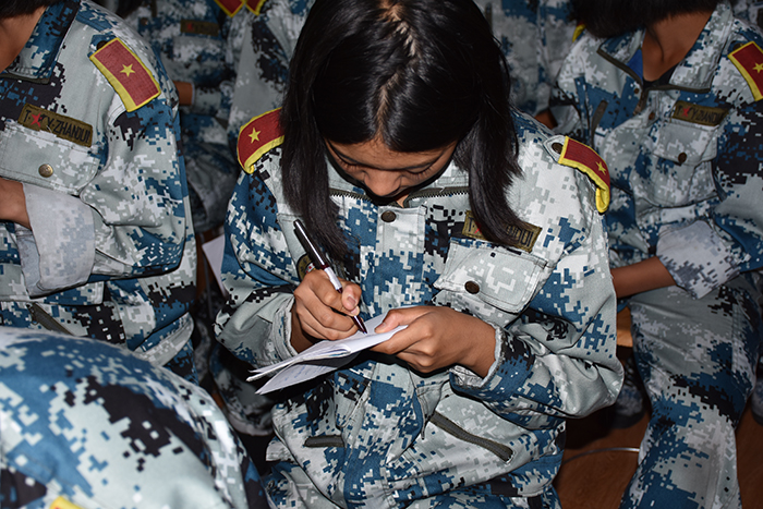 “現(xiàn)在許多孩子從小一帆風(fēng)順,要風(fēng)得風(fēng),要雨得雨,不知愁滋味,缺乏生活的磨煉,心理脆弱,心理承受力差。在學(xué)校里,教師一句善意的批評(píng),就感到委屈,痛苦;一次考試成績(jī)不理想,就感到失意,失去信心;沒有被評(píng)上先進(jìn),就恨老師、恨同學(xué);在家做錯(cuò)了事,父母責(zé)備幾句,就離家出走。更有甚者,遇到挫折,就尋短見。這都給家庭、學(xué)校帶來了嚴(yán)重的危害,也是對(duì)自己極不負(fù)責(zé)的表現(xiàn)!鄙钪杏龅竭@些問題又該怎樣進(jìn)行自我調(diào)節(jié)呢?同學(xué)們開始爭(zhēng)先恐后發(fā)言,有的說要客觀地認(rèn)識(shí)自我,有的說要設(shè)身處地理解他人,有的說要有正確的三觀和道德感,有的說要建立和諧的人際關(guān)系,還有的說要學(xué)會(huì)感恩......孩子們說的都有道理,但好習(xí)慣的養(yǎng)成,才是塑造健全人格的關(guān)鍵。