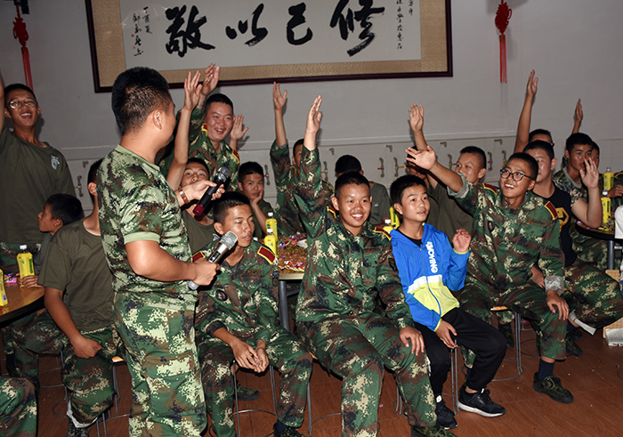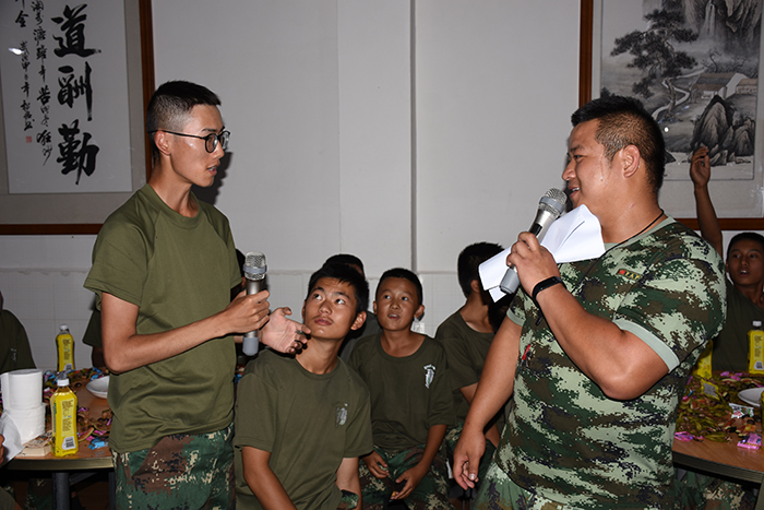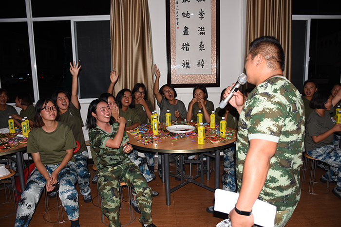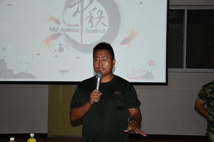 其間,晚會(huì)的主持人(副總教官王濤)把有趣的“猜謎語(yǔ)”貫穿其中,大家爭(zhēng)前恐后舉手搶答,或討論、或冥思,就為猜出謎底那一刻的滿足,拿到獎(jiǎng)品的那份開心。整個(gè)晚會(huì),孩子們一邊吃著老師們精心在家樂福挑選的月餅、果汁、零食,一邊欣賞著精彩紛呈的節(jié)目,樂在其中,氣氛非常熱烈。