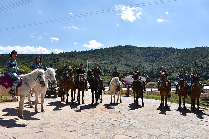 美美地享受了一頓美食之后,孩子們迫不及待地來到了牧羊湖?粗裂蛉藸恐拇篑R,大家興奮不已,躍躍欲試。有的想立馬去選一匹愛駒,充當(dāng)一個(gè)騎士,體驗(yàn)一下馬背上的豪情,不時(shí)腦補(bǔ)了很多大草原上騎馬馳騁的畫面;有的望而卻步,生怕從馬上摔下來;有的甚至害怕馬。但在牧馬人講解騎馬的技巧和動(dòng)作后,在老師的鼓勵(lì)下,加上牧馬人在身旁牽馬隨行,確保安全。孩子們頓時(shí)就自信起來,做起了馬背上的騎士(宛若貴族王子公主),不自覺的抬起頭,展開視線,昂揚(yáng)地看著奇美無比的秋日燦陽,一起沿著鏡湖、村落穿行踱步,追尋秋的腳步。