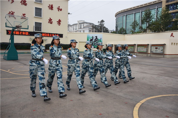 上午九時(shí),在莊嚴(yán)的升國(guó)旗儀式后,軍訓(xùn)匯報(bào)表演正式拉開(kāi)帷幕。全體學(xué)生整裝待發(fā),接受檢閱。同學(xué)們以各班級(jí)組成的隊(duì)列為單位,在教官的指揮下,喊著響亮的口號(hào),邁著整齊的步伐,氣宇軒昂、英姿颯爽地表演了隊(duì)列一至八個(gè)內(nèi)容(稍息跨立立正、停止間轉(zhuǎn)法、齊步跑步正步、齊跑步互換齊正步互換、齊跑步方向變換、蹲下與起立、脫帽與帶帽、敬禮與禮畢),向大家展示了日常訓(xùn)練的驕人成績(jī)。