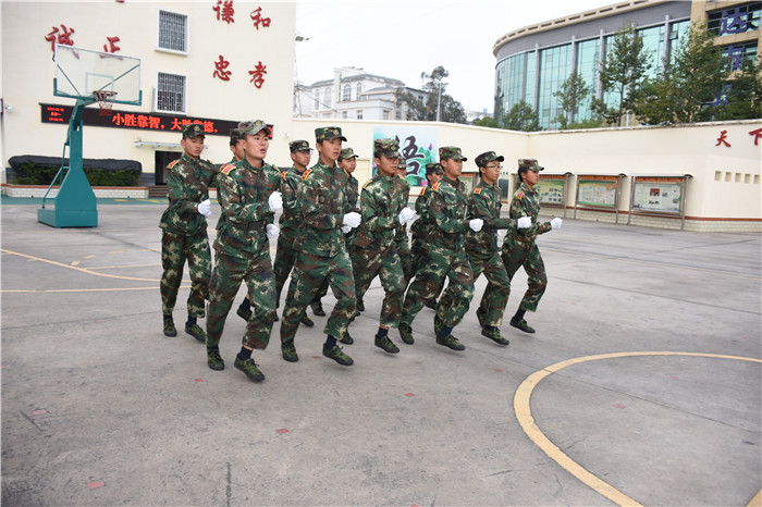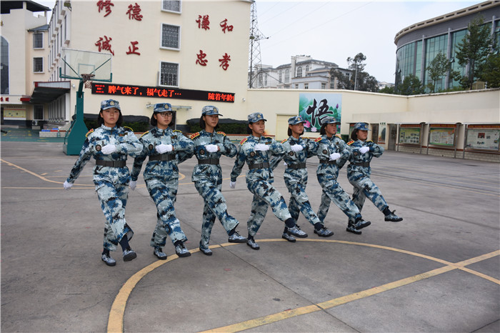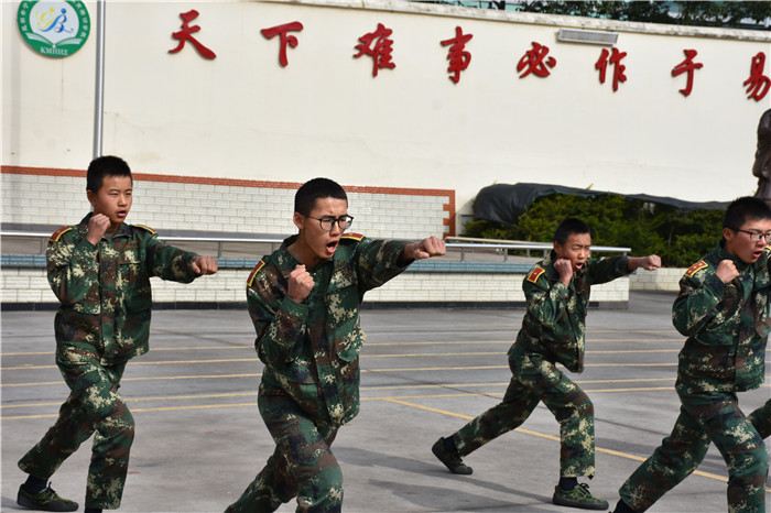 在基本的隊(duì)列表演完畢后, 伴著激揚(yáng)的旋律,女生方隊(duì)進(jìn)行了《大夢(mèng)想家》手語(yǔ)操和《青春集合在軍旗下》女兵操表演?!她們一個(gè)個(gè)精神抖擻,柔中帶剛,舉手投足釋放著青春的活力,贏得了師生陣陣熱烈的掌聲。伴隨著震耳欲聾的吶喊聲,男生方隊(duì)出場(chǎng)了!他們個(gè)個(gè)生龍活虎,一招一式,剛勁有力,為我們淋漓盡致地完整展示了擒敵拳、棍術(shù)等,充分展現(xiàn)了當(dāng)代小軍人的風(fēng)采。