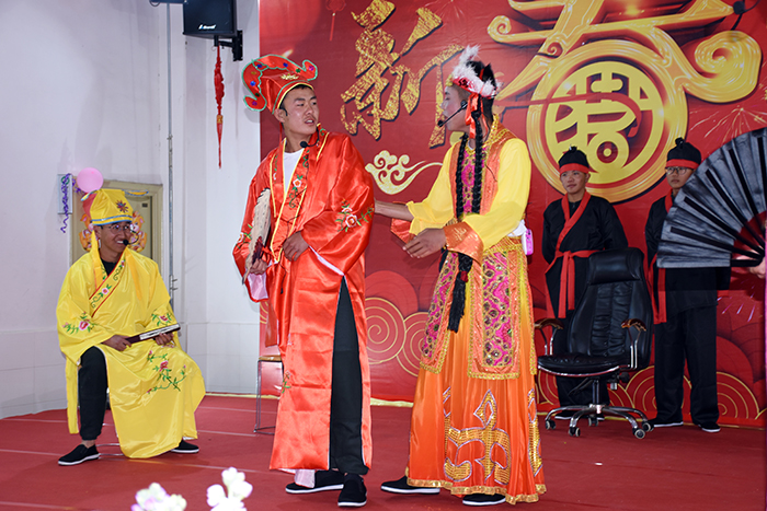 隨后,由學生王璐瑤、王佳曉和老師李月、王清恒主持的舞蹈、小品、朗誦、獨奏等14個精彩節(jié)目輪番登場。伴隨著一班、三班、十六班帶來的開場舞《恭喜發(fā)財》,晚會正式拉開帷幕,大家在熱情的旋律中開心地感受著濃郁的過年氛圍。