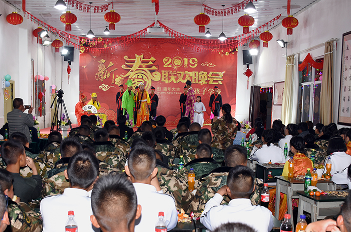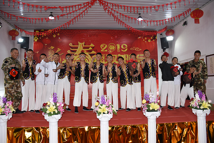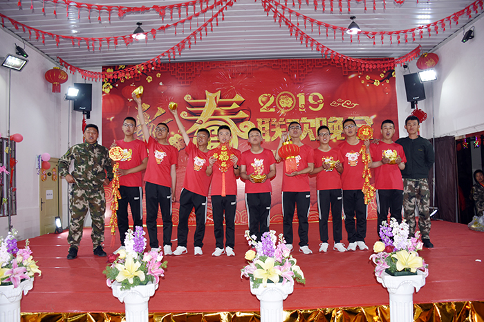 瑞犬凱歌辭舊歲,金豬送福迎新春。2019年2月5日(大年初一)晚,好孩子學校多功能廳成為了師生聯(lián)歡的舞臺、歡樂的海洋,我!2019年春節(jié)聯(lián)歡晚會”在這里隆重舉行。學校校長魯植、副校長兼總教官毛積敏、辦公室主任單官昱、總務主任李月、辦公室副主任施頻頁、副總教官王濤、張汝云等中層以上干部及老師參加了活動。我校畢業(yè)生李哲、韓凈宇同學及其父親也出席了本次晚會。