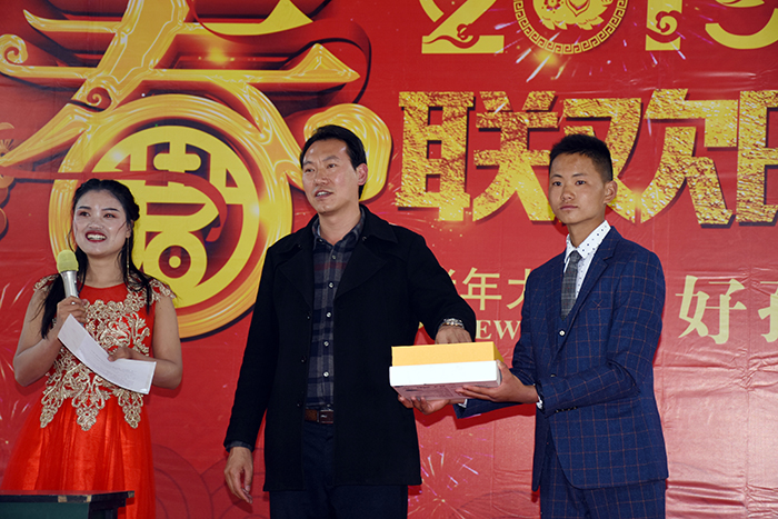 在晚會過程中,還穿插了現(xiàn)場抽獎互動環(huán)節(jié),魯校長親自上臺抽獎,并為獲獎同學頒獎,幸運中獎者領到獎品十分興奮,其他同學也為之歡呼,現(xiàn)場氣氛異常熱烈。