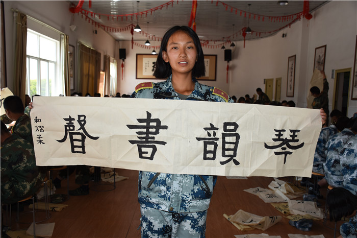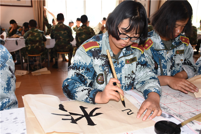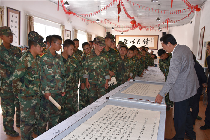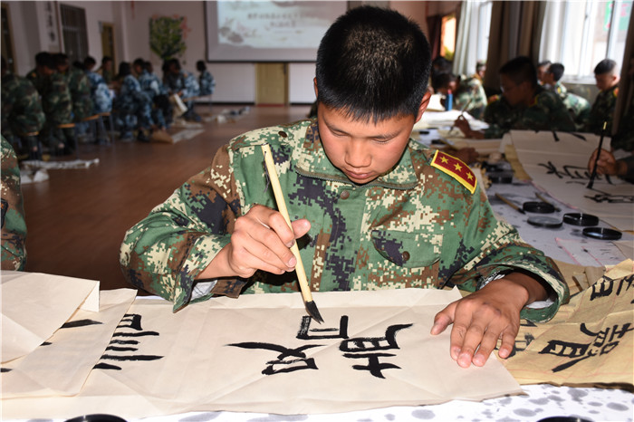 比賽尾聲,魯校長還把孩子們中間寫的好的書法裝裱,拿到現(xiàn)場展示,勉勵孩子們要向榜樣學習:“同學們,這是你們的同學寫的書法,他們就生活在你們中間,離你們并不遙遠。他們入校時也和大家一樣,什么都不懂,甚至連如何握筆都不知道,但經(jīng)過幾個月的學習,進步顯而易見。不但字寫得好,而且心境也更加寧靜平和。我常常和大家說‘練筆,就是練心’,一個人如果僅僅把字練得爐火純青,他也只能成為‘書匠’,只有把握中華文化這個根基、深入體會中華文化中詩書禮樂的共性、領會經(jīng)典與美學的意義,才能可能成為真正的大師。所以,我也希望同學們能在這里靜下心來,好好學習,寫端端正正中國字,做堂堂正正中國人!”