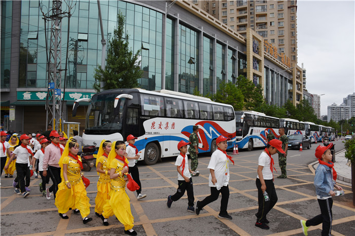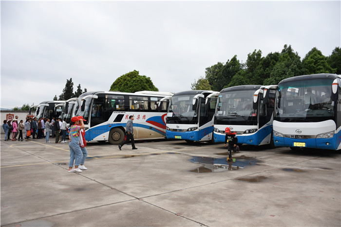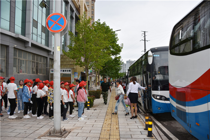 由于東湖小學(xué)離好孩子學(xué)校有一段距離,為保證孩子們的路途安全,學(xué)校領(lǐng)導(dǎo)提前安排好6輛大客車(chē)到學(xué)校早早等待,把全校師生和家長(zhǎng)安全接到好孩子學(xué)校。