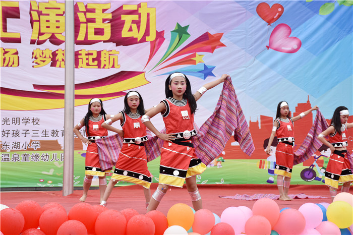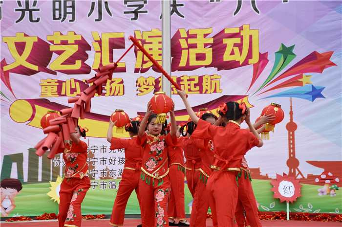 緊接著,精彩紛呈的文藝匯演在光明學(xué)校高段年級(jí)組的《開(kāi)門(mén)紅》舞蹈中拉開(kāi)序幕。隨后,舞蹈《glass》、《我是紅領(lǐng)巾》、葫蘆絲合奏《荷塘月色》、舞蹈《串燒》、《花衣裳》、《中華孝道》、《匕首操》、《阿拉伯之夜》、武術(shù)《精忠報(bào)國(guó)》、舞蹈《青春集合在軍旗下》等11個(gè)精彩節(jié)目相繼亮相。