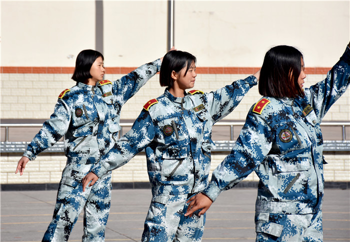 基本隊列動作表演結(jié)束后,各方隊在教官的指揮下進行了擒敵拳、應(yīng)急棍、手語操、女兵操等表演。同學(xué)們整齊的隊伍、精準的動作、昂揚的士氣、嘹亮的軍歌、優(yōu)美的旋律、燃燒的激情贏得了陣陣掌聲。