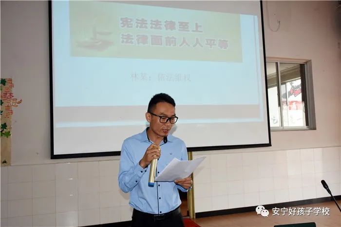 活動(dòng)開始,我校執(zhí)行校長(zhǎng)尹斌做了開場(chǎng)致辭,熱烈歡迎領(lǐng)導(dǎo)們的到來(lái)并由衷感謝各位領(lǐng)導(dǎo)對(duì)學(xué)校的關(guān)心支持,也對(duì)同學(xué)們提出了要學(xué)法、知法、用法、守法的殷切希望。