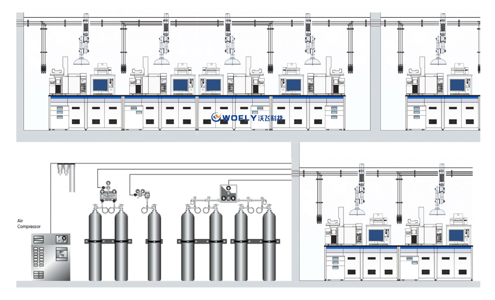無(wú)氣瓶在實(shí)驗(yàn)室內(nèi),節(jié)省空間,消除危險(xiǎn)源。