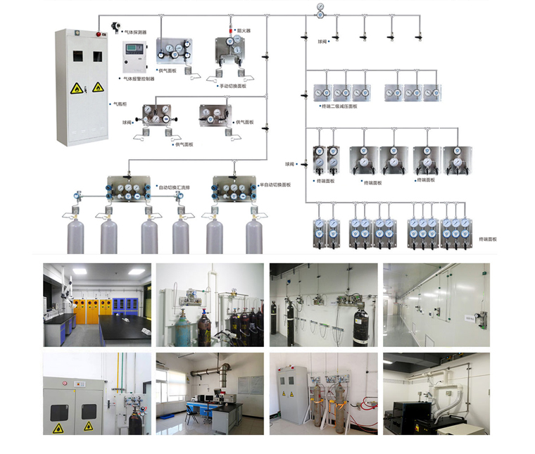 實(shí)驗(yàn)室中央供氣系統(tǒng),是現(xiàn)在一種普遍被采用的供氣方式,它主要是由氣源,切換裝置,調(diào)壓裝置,終端用氣點(diǎn),監(jiān)控及報(bào)警裝置組成。簡(jiǎn)單來(lái)說,實(shí)驗(yàn)室集中供氣系統(tǒng)就是將所有氣瓶集中存放在氣瓶房,通過氣瓶減壓閥將氣體輸送到各個(gè)實(shí)驗(yàn)室(即儀器端)的系統(tǒng)。