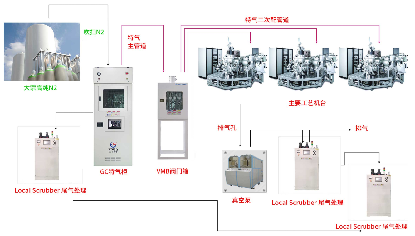 電子特氣管道系統(tǒng)的主要作用講解。電子特氣管道系統(tǒng)是半導(dǎo)體、顯示面板、光伏等高端制造業(yè)中不可或缺的核心基礎(chǔ)設(shè)施,其主要作用是為精密制造過程提供高純度、高穩(wěn)定性、高安全性的特種氣體輸送解決方案。以下從功能定位、技術(shù)特性、應(yīng)用場景三個維度展開詳細(xì)講解: