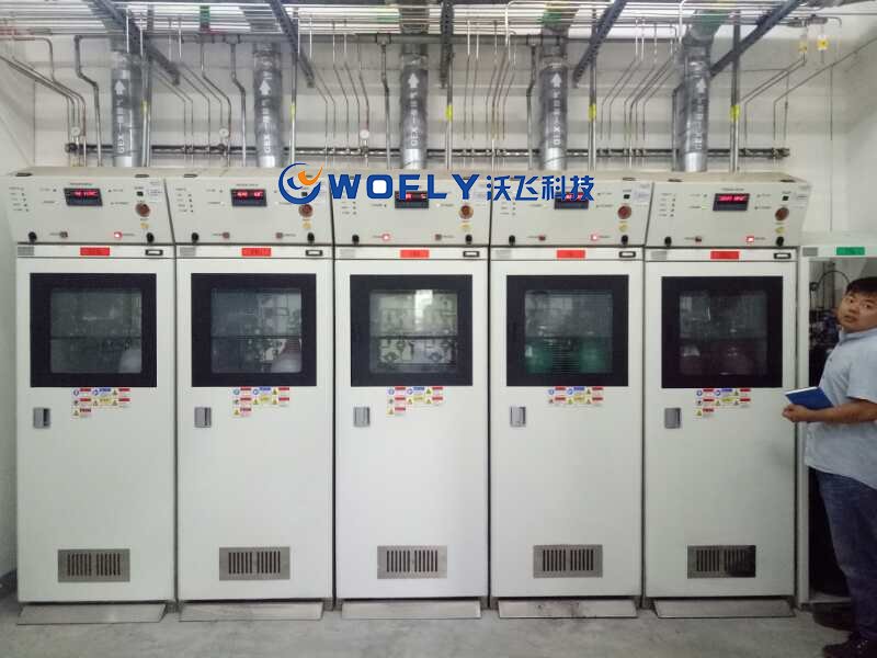 沃飛WOFLY全自動特氣柜(GC)通過PLC面板,配合觸摸屏進(jìn)行系統(tǒng)顯示和設(shè)定,從而實(shí)現(xiàn)設(shè)備安全有效的運(yùn)行。其內(nèi)部PLC程式設(shè)計的安全聯(lián)鎖功能、高純閥件的合理選擇和布局,既滿足了CVD(化學(xué)氣相沉積)在生產(chǎn)過程中對氣體原材料的高純度和連續(xù)穩(wěn)定供給的要求,也確保了正常生產(chǎn)和員工人身安全。