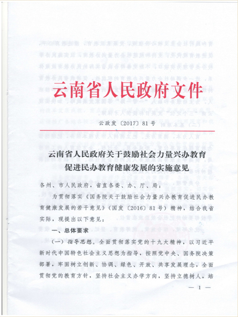 云南省人民政府關(guān)于鼓勵(lì)社會(huì)力量興辦教育促進(jìn)民辦教育健康發(fā)展的實(shí)施意見(jiàn)