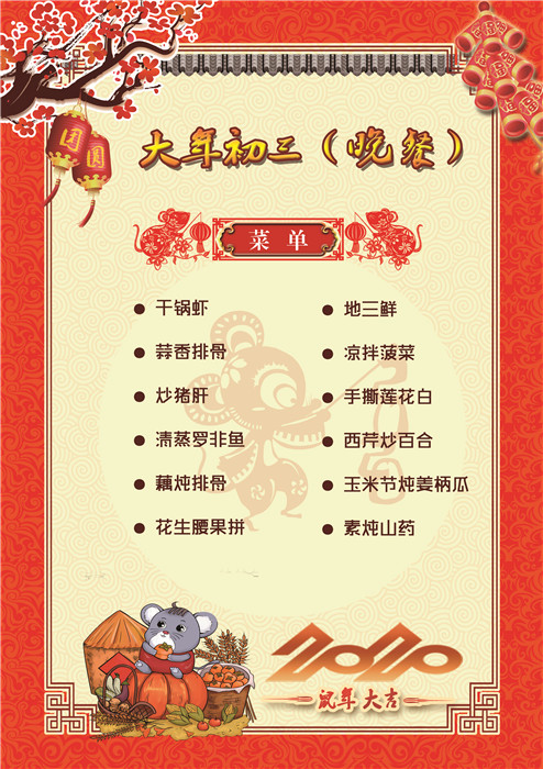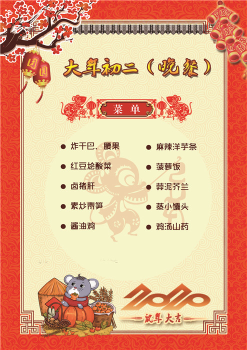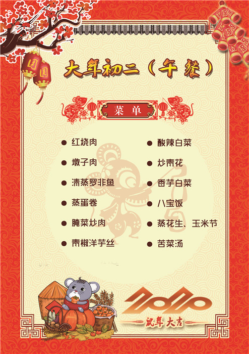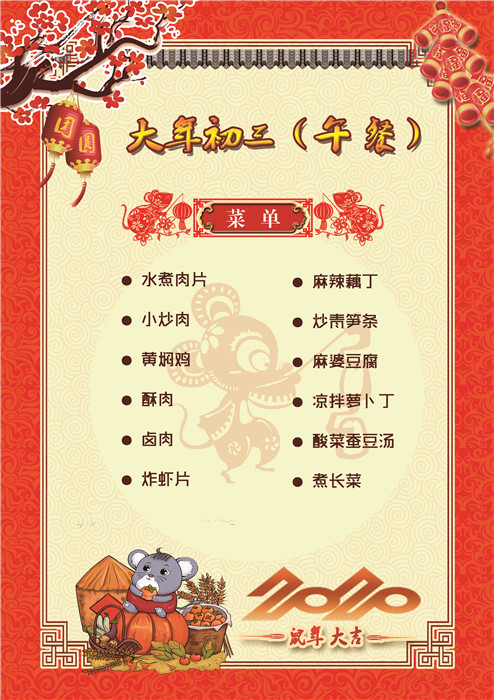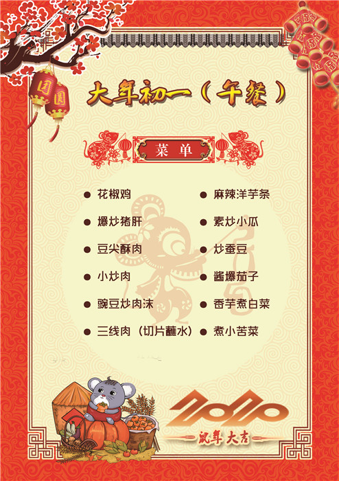 過(guò)年了 !孩子們吃什么?這是學(xué)校領(lǐng)導(dǎo)幾天來(lái)一直思考的問(wèn)題。經(jīng)過(guò)與學(xué)校營(yíng)養(yǎng)師、食堂廚師們多次商議后,本著營(yíng)養(yǎng)、健康、不浪費(fèi),又要保證孩子每餐都能吃上新鮮可口的飯菜,終于議定了菜單,現(xiàn)予以公布。祝孩子們新年快樂(lè)!祝全體家長(zhǎng)萬(wàn)事如意!