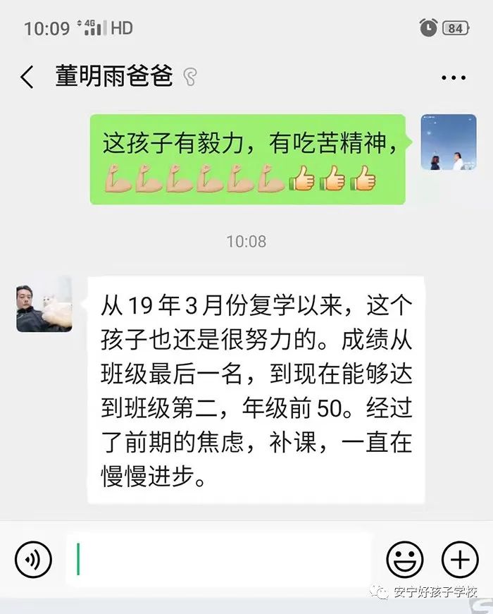 努力確實不會虧待任何人,10個月的好孩子生活,董明雨的青春在這里拔節(jié)生長,郁郁蔥蔥。回歸學校的他,用自己的實際行動,在一年的時間里實現(xiàn)了彎道超車,從班級倒數(shù)第一到班級正數(shù)第二、年級五十,再到今天的超過一本線11分。憑著這股不服輸?shù)膭,相信未來,他也會成為別人的望塵莫及。