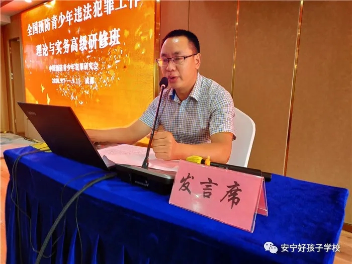 2020年9月7日—11日,中國預(yù)防青少年犯罪研究會在成都舉辦了第十一期“全國預(yù)防青少年違法犯罪工作理論與實務(wù)高級研修班”,我校執(zhí)行校長尹斌在培訓(xùn)會上作辦學(xué)經(jīng)驗交流,辦學(xué)成果得到了參會領(lǐng)導(dǎo)及學(xué)員們的高度認(rèn)可。