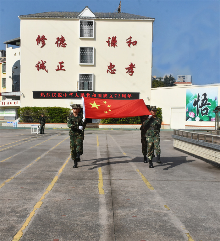 迎著初升的朝陽,伴著嘹亮的國歌,鮮艷的五星紅旗在師生們的深情注視下冉冉升起!