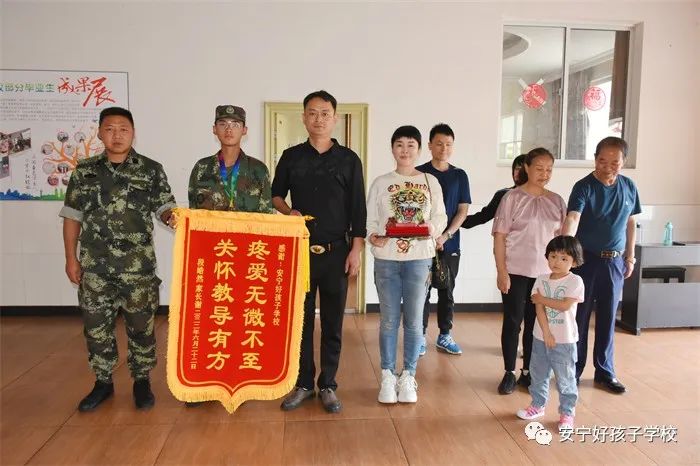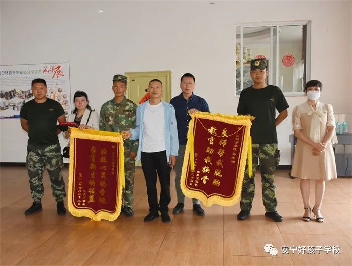 近日,我校學(xué)生段皓然、連瑞、祁云豪相繼畢業(yè)。在畢業(yè)典禮上,三位同學(xué)的家長分別將繡有“疼愛無微不至 關(guān)懷教導(dǎo)有方”、“拯救心靈的圣地 孕育新生的搖籃”、“良師幫我脫胎 教官助我換骨”和“春蠶織出滿園錦繡 燭炬照紅一代心靈”字樣的錦旗贈給學(xué)校,以此感謝學(xué)校和老師對孩子的諄諄教誨和無微不至的關(guān)懷,四面錦旗飽含著家長誠摯的謝意,也蘊藏著老師們愛的情懷。