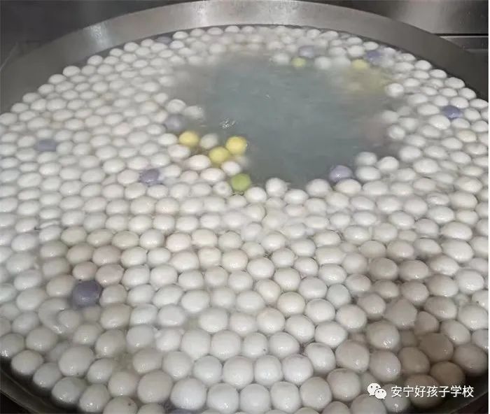 包湯圓開始了,工作人員拿出提前準(zhǔn)備好的糯米面、花生餡、芝麻餡、紫薯餡,大家一起和面、分團(tuán)、包餡兒、封口,不一會(huì)兒,一個(gè)個(gè)白白胖胖的湯圓新鮮出爐,耐心地等待著同學(xué)們把自己帶回家。