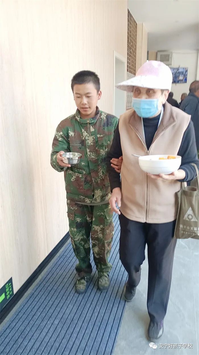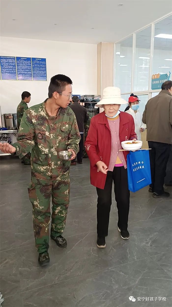 到達目的地后,同學們就立即行動起來。有的協(xié)助社區(qū)工作人員布置活動現(xiàn)場,有的幫助爺爺奶奶領牌登記,有的維持現(xiàn)場秩序,有的幫忙打飯、倒水......老人被孩子們的真誠熱情深深打動,和孩子們親熱地閑聊起來。孩子們得體的言談和暖心的行動,得到老人們的交口稱贊。養(yǎng)老服務中心不時傳來陣陣歡笑聲,呈現(xiàn)出一派其樂融融的景象。