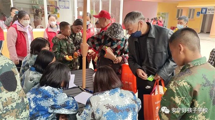 隨后,孩子們在老師的指導(dǎo)下,有的為社區(qū)居民作疫苗接種情況登記,有的給老人抽獎兌換生活用品,有的為老人送上水果和自己在學(xué)校勞動教育實踐基地種植的蔬菜......期間孩子們不時跟老人們嘮家常,噓寒問暖。小志愿者們的熱情和奉獻(xiàn)精神讓老人們心里溫暖無比,受到了老人們的一致好評。